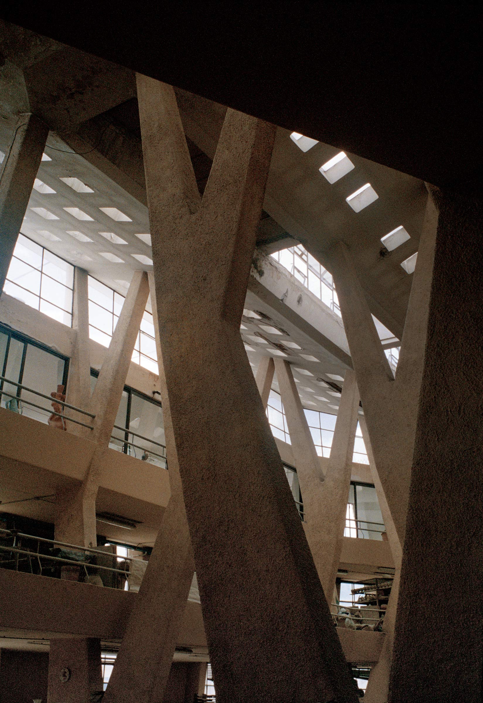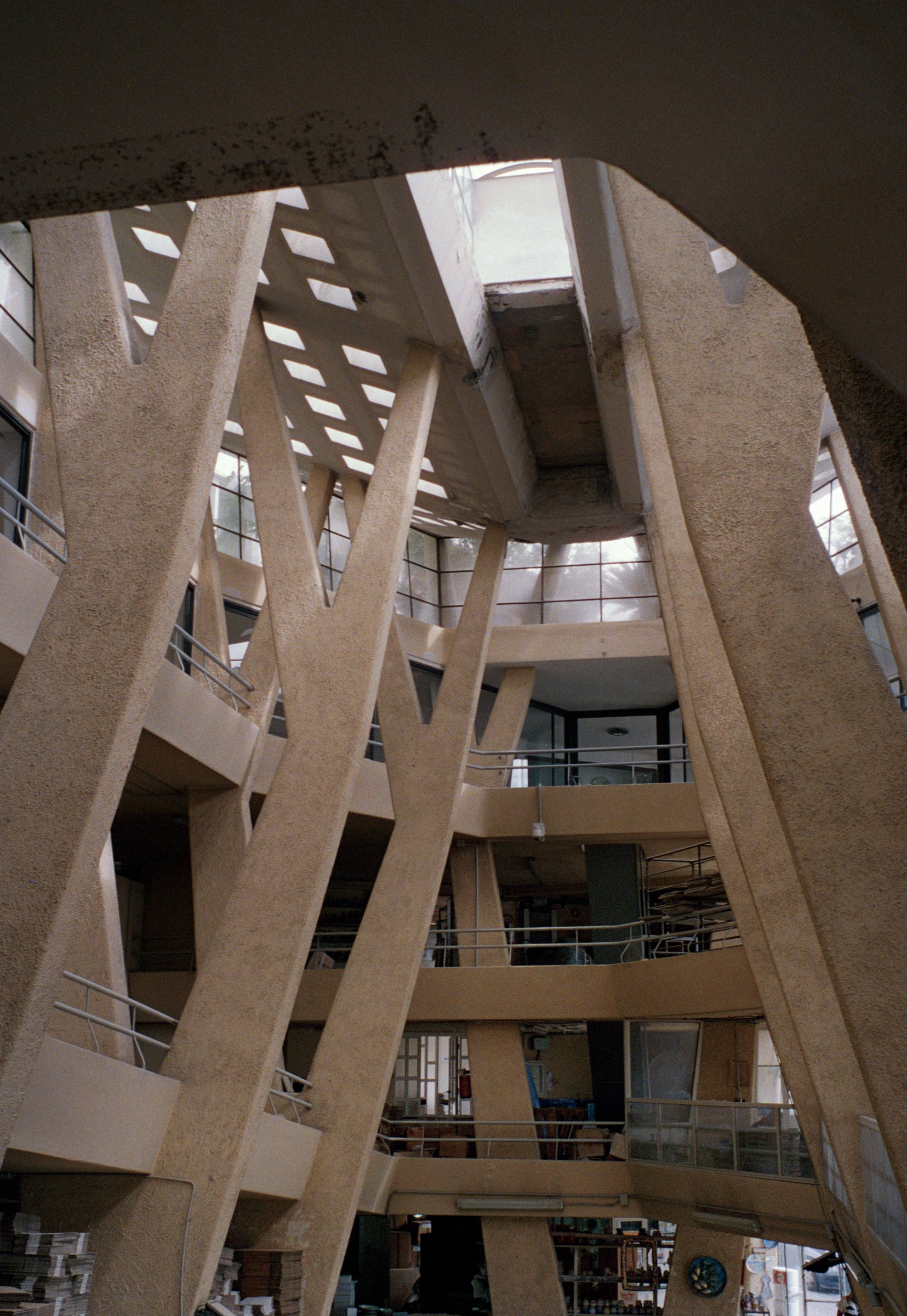 Designed by the architect Paolo Soleri in 1952 for the ceramist Vincenzo Solimene, the Solimene factory is located in Vietri sul Mare (Salerno, Italy). The structure of the building, intended for the production, display and sale of ceramic objects, is made up of plastic reinforced concrete pillars about 16 meters high. The interior is illuminated from the widely glazed roof and large windows with metal frames that alternate with the blind parts of the main street facade. As in Guggenheim Museum, there is a ramp that provide continuity to the production flow from the top to the bottom of the building.